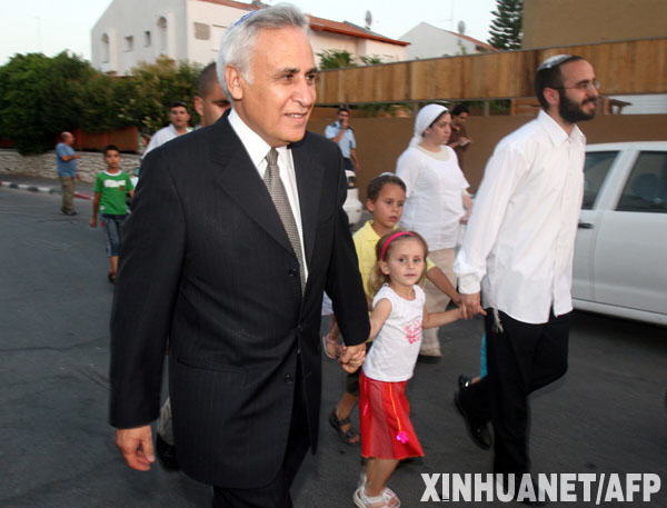 6月29日,以色列总统摩西·卡察夫(前左)走出位于以色列南部的家,前往教堂。在与检察官达成认罪协议后,受到强奸罪等多项指控的以色列总统卡察夫于28日向以色列议会议长递交了辞呈,辞职将在48小时后生效。卡察夫的总统任期应于今年7月结束。