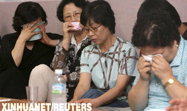 7月27日,在韩国首都首尔南部地区,部分韩国人质的家人通过电视了解有关在阿富汗被绑架的韩国人质的消息,期盼亲人平安获释。被绑韩国人质所在地阿富汗加兹尼省省长当日对新华社记者说,塔利班已同意再次延长处死人质的最后期限。 新华社/路透