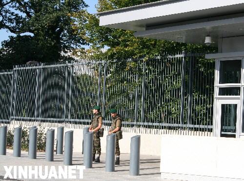 9月1日,两名安全人员在美国驻日内瓦联合国代表处门前执勤。