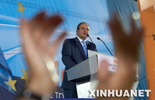 9月14日,在希腊首都雅典举行的竞选集会上,希腊现任总理、新民主党领导人卡拉曼利斯向支持者发表演说。希腊定于9月16日举行大选,卡拉曼利斯将与反对党泛希腊社会主义运动(帕索克)领导人乔治·帕潘德里欧角逐总理宝座。新华社记者徐金泉摄