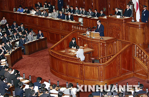 10月1日,在位于东京的日本国会众议院,日本新首相福田康夫发表施政演说。福田于9月25日当选日本第91任首相并组建新内阁。 新华社记者 任正来 摄