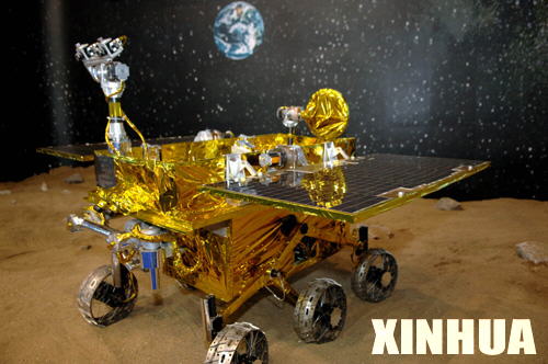 我国自行设计研发的月面巡视探测器(简称月球车)原理机在第六届中国(珠海)国际航空航天博览会上亮相(2006年10月31日摄)。 新华社记者周文杰摄