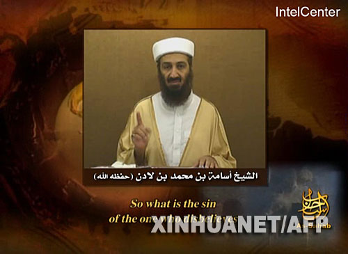资料图片:美国英特尔中心9月11日提供的这幅录像截图显示了“基地”组织领导人本·拉丹正在发表讲话。在“9·11”事件6周年之际,包含“基地”组织领导人本·拉丹讲话的录像带再度出现。