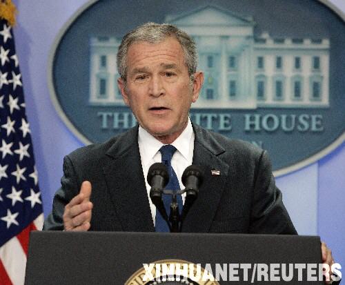 10月17日,美国总统布什在首都华盛顿的白宫举行的新闻发布会上发言。