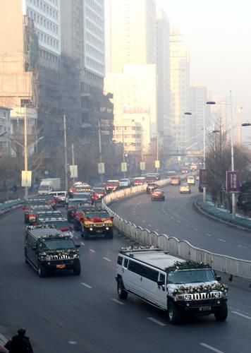 婚礼车队中一位司机称,5时许车队从和平区南京街中润国际大厦开出,前往于洪区翟家乡迎娶新娘。他说记者遇见迎亲车队时,车队已经接完新娘,正在赶往位于南湖附近卧波苑小区新房的途中。