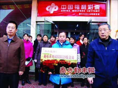 记者从甘肃省福彩中心透露,嘉峪关市福彩中心昨天举行隆重仪式,给予中出亿元大奖的投注站3000元奖励并授予牌匾。