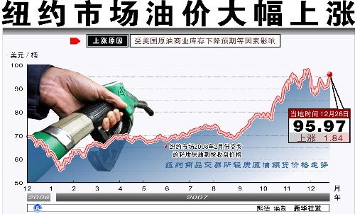 2007年12月27日 图表:纽约市场油价大幅上涨