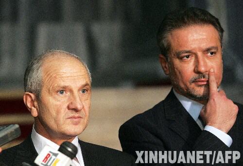 2007年12月1日,在马其顿首都斯科普里,马其顿总统茨尔文科夫斯基(右)与来访的科索沃总统塞伊迪乌出席新闻发布会。正在马其顿访问的塞伊迪乌当日表示,科索沃不久将宣布独立。