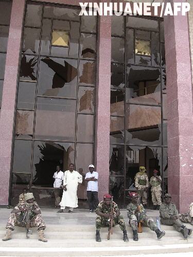 这张2006年4月17日拍摄的资料照片显示在乍得首都恩贾梅纳,乍得士兵在经过激战的总统府前休息。中国驻乍得使馆官员2008年2月2日上午证实,乍得反政府武装与政府军正在首都恩贾梅纳城内交火,乍得总统府一带枪炮声非常激烈。