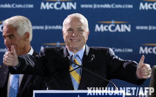 1月29日,美国共和党总统竞选人麦凯恩在佛罗里达州迈阿密的集会上向支持者发表演讲。据美国媒体报道,麦凯恩29日在佛罗里达州共和党总统预选中获胜,以36%的得票率名列第一。新华社/法新