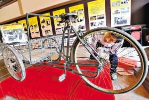 车身在前,脚踏和座位在后,一辆半世纪前广州从化市民用来送货的脚踏三轮车,首次摆在展馆内。车旁还挂出一幅黑白照片,周恩来用力蹬着脚踏,前面的工作人员则帮忙推行。原来那是1959年1月,周恩来到广州从化视察,住在从化温泉。有一天,他在温泉边散步的时候,见到工作人员正艰难蹬着载着一叠毛毡的三轮车,连忙走过去帮忙,后来干脆骑上这辆三轮车帮助送毛毡。