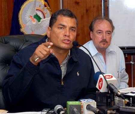 厄瓜多尔总统科雷亚宣布驱逐哥伦比亚驻厄瓜多尔大使,抗议哥伦比亚政府军越境进入厄瓜多尔领土。