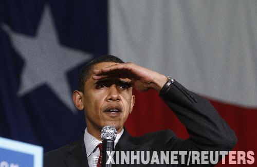 3月3日,美国民主党总统竞选人贝拉克·奥巴马在得克萨斯州的卡罗尔顿参加竞选活动。新华社/路透