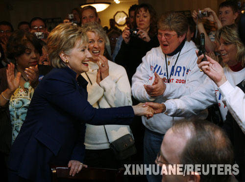 3月20日,美国民主党总统竞选人希拉里(前左)在印第安纳州特雷霍特进行的竞选活动上与支持者见面。新华社/路透