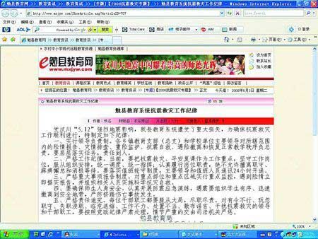 在勉县教育局的官方网站上,记者没有看到关于这个“监考老师不得先跑”的规定,但这个“教育系统抗震救灾工作纪律”却也显示出当地教育部门的决心。