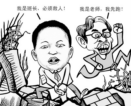 学生:“我们一开始没反应过来,只看你一溜烟就跑得没影了,等反应过来我们都吓得躲到桌子下面去了!等剧烈地震平息的时候我们才出来!老师,你怎么不把我们带出来才走啊?”