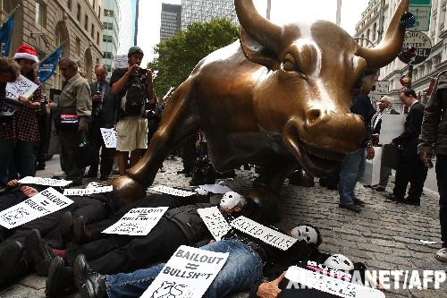 2008年9月26日 美国发生反对政府救市的集会 9月25日,部分抗议者在美国纽约华尔街集会,反对美国政府救市。民意测验显示,相当一部分美国人认为,布什政府的救市方案让危机的始作俑者华尔街投机者受益。 新华社/法新
