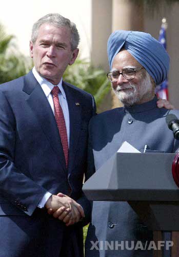 2006年3月1日起,美国总统布什对印度进行了为期3天的访问。3月2日,美印两国达成民用核能合作协议。这是布什印度之行的最大具体成果。(资料图片 新华社/法新)