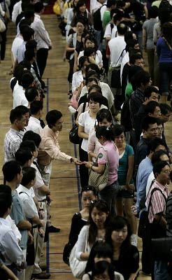 昨日下午,卢湾体育馆热闹非凡,3000余位白领青年凭借手中的号码,希望在此找到人生伴侣。为了不出现“阴盛阳衰”的尴尬场面,活动主办方特意将门票男女的配比为4:6。
