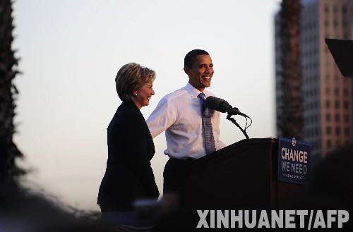 10月20日,在美国佛罗里达州奥兰多市,民主党前总统竞选人希拉里·克林顿(左)陪同民主党总统候选人贝拉克·奥巴马参加竞选活动。8月28日,奥巴马在民主党全国代表大会上接受总统候选人提名。随后,希拉里加入奥巴马的“拉拉队”,为民主党的竞选活动加油助威。 新华社/法新