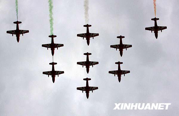 印度空军“阳光”特技飞行表演队进行特技飞行表演新华社记者王建民摄