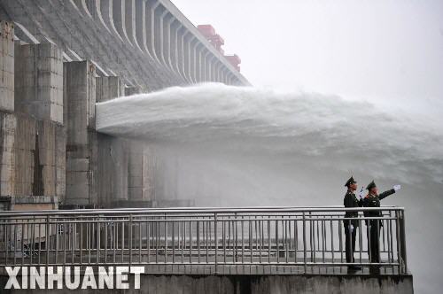 11月10日,武警战士在三峡大坝前巡逻。2008年11月,举世瞩目的三峡工程建设实现了具有里程碑意义的两大标志性目标,即规划设计的26台70万千瓦发电机组全部投入运行。新华社记者 郝同前 摄