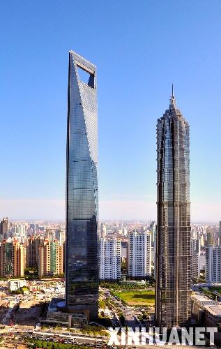 这是2008年8月28日拍摄的上海浦东环球金融中心和金茂大厦。 新华社发 |