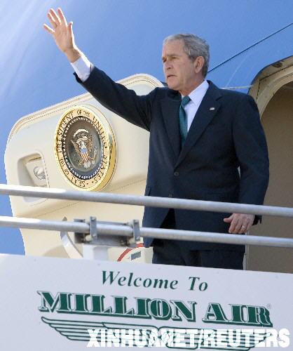 资料图片:10月20日,美国总统布什乘专机抵达路易斯安那州亚历山德里亚。新华社/路透