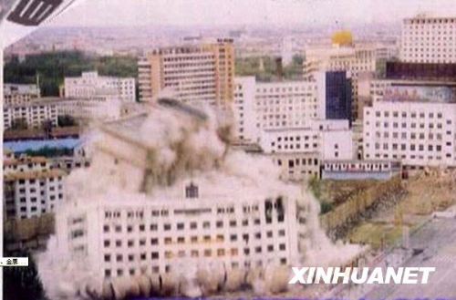 2005年5月17日,刚建成四年的呼市公安局11层指挥大楼被炸掉,目的是给“西北第一高楼”腾地方。新华社发