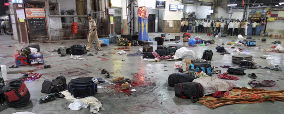 警方说,恐怖分子使用手榴弹和AK-47步枪袭击了位于孟买市中心的CST火车站、维多利亚火车站、泰姬玛哈酒店以及孟买市政府等著名建筑。