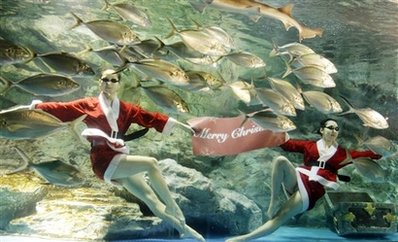 韩国小姐水下庆圣诞