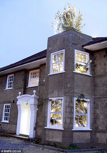 英国设计师造10米高圣诞树 伸出3层楼屋顶