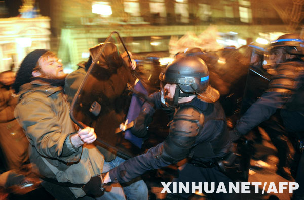 1月29日,防暴警察在法国首都巴黎街头与示威者发生冲突。新华社/法新