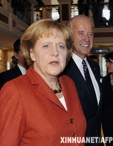 2月7日,在德国慕尼黑,德国总理默克尔(左)和美国副总统拜登抵达慕尼黑安全政策会议会场。为期3天的第45届慕尼黑安全政策会议6日在慕尼黑开幕。300多名政要及安全领域专家出席会议。慕尼黑安全政策会议原名世界防务大会,由德国人埃瓦尔德·冯克莱斯特在1962年创办。