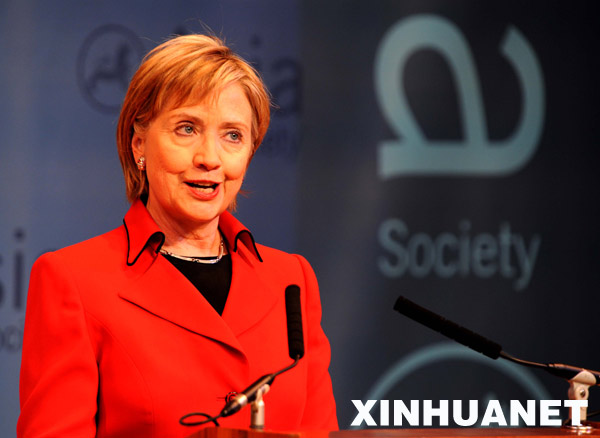 当天,美国国务卿希拉里来到总部位于纽约的美国亚洲协会,在出访亚洲四国之前,就美国的亚洲政策等问题发表讲话,并接受亚洲协会成员和媒体的提问。新华社记者申宏摄