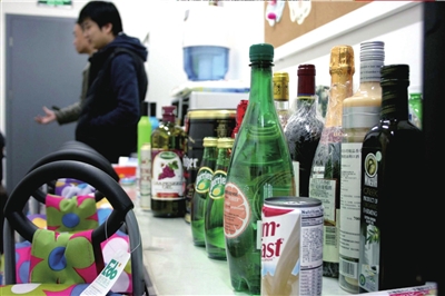 前晚9点,记者在OLE"超市办公室内看到,大大小小一百多件商品摆在桌上和地上,6辆购物车也在办公室内,其中一车还满装着商品。有大米、通心粉、酒类、化妆品等,而且绝大多数都是外国产品,商品上标注的都是外文。桌子的一角摆放着三瓶昂贵的法国酒,还有伏特加以及德国黑啤。