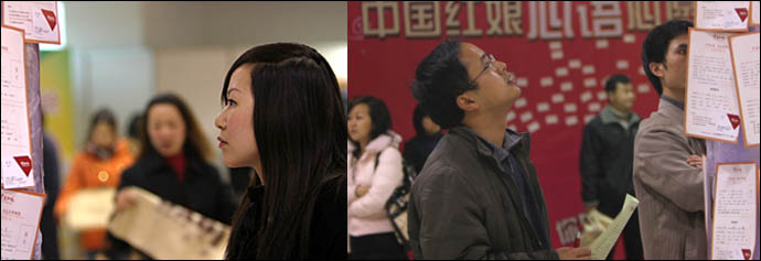 三十来岁的阿戴,是中国红娘网的注册会员,听说要举办网络相亲会,她也来到现场,准备找一个跟自己学历、年龄、背景相当的人,可是今天她并没有找到自己心仪的人,准备继续留意网上的信息。