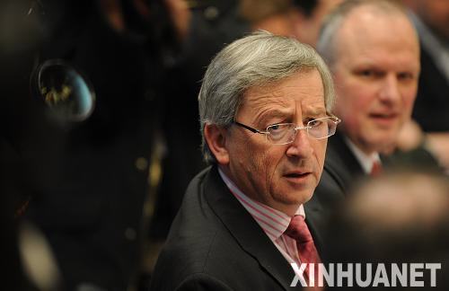 3月9日,在比利时首都布鲁塞尔欧盟总部,欧元集团主席、卢森堡首相兼财政大臣容克出席欧元区财长会议。欧元区财长会议当天在布鲁塞尔举行。新华社记者武巍摄