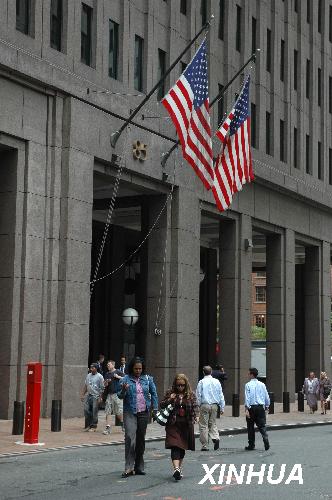 2008年9月22日,几名行人路过位于美国纽约曼哈顿岛下城的美国第一大投资银行高盛集团总部。美国联邦储备委员会21日宣布,华尔街“地震”中幸存的两大投资银行高盛集团和摩根士丹利公司获准向商业银行转型。至此,美国五大投资银行已经在华尔街金融危机中全部消失。新华社记者杨柳摄