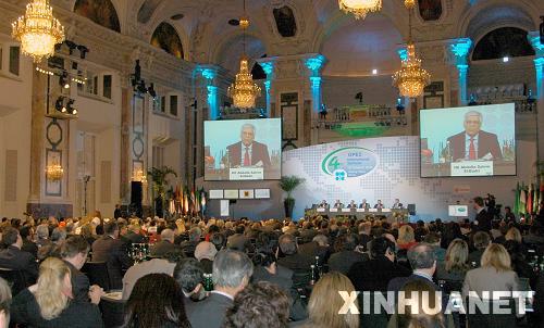 3月18日,在奥地利首都维也纳,来自各国能源部门及国际机构的官员和专家参加“第四届欧佩克国际研讨会”。“第四届欧佩克国际研讨会”当天在维也纳霍夫堡宫正式开幕。包括一些国家的能源部长,石油公司的高管人员,欧佩克、国际能源机构等国际组织的领导人以及有关学术界专家等约700人与会。本届为期两天研讨会的主题是“石油:未来的稳定与可持续性”。新华社记者刘钢摄