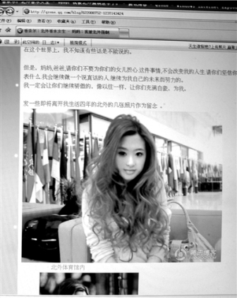 此文一出,随即被腾讯置顶,并迅速成为网络热点。截至昨晚6点10分,“北外香水女生”博客点击率过百万。