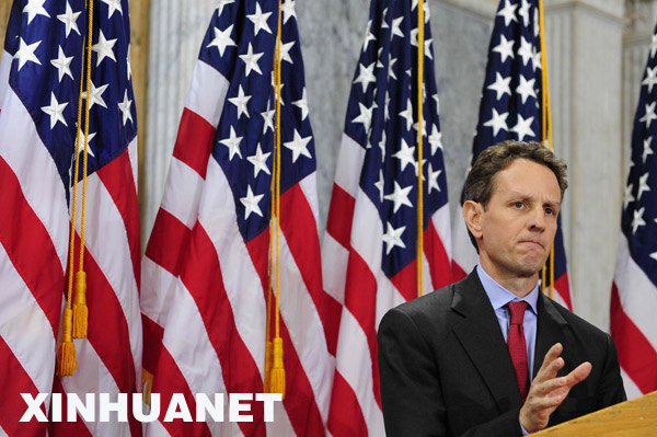 2月10日,美国财政部长盖特纳在财政部宣布新的金融救援计划,旨在通过解决金融机构的“有毒资产”问题,稳定金融市场。新华社记者张岩摄