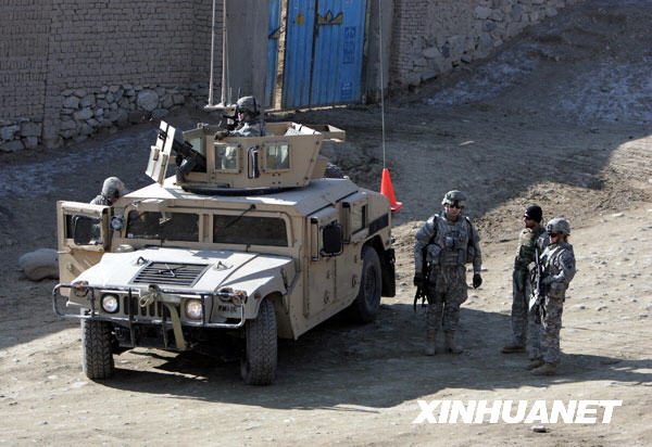 资料图片 2月1日,在阿富汗首都喀布尔,驻阿美军士兵在袭击现场附近警戒。新华社发(扎比摄)