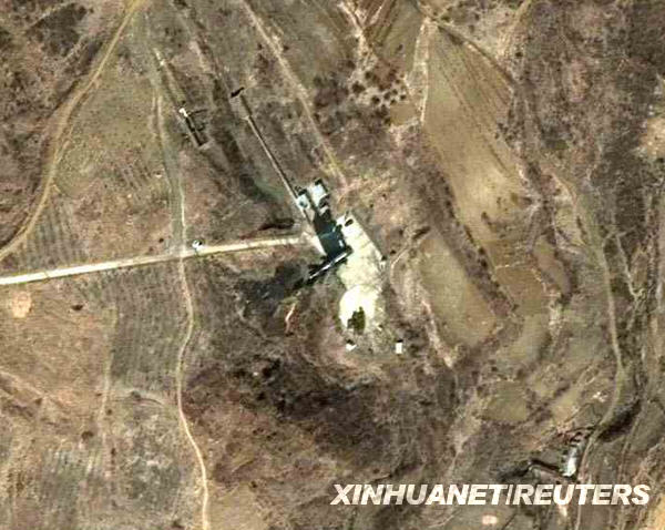 这张3月29日快鸟(QuickBird)卫星拍摄的图像显示的是朝鲜东海岸的舞水端里火箭发射场。新华社/路透