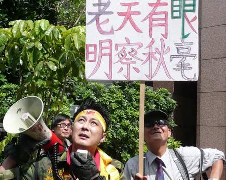 资料图:台民众示威怒斥陈水扁夫妇