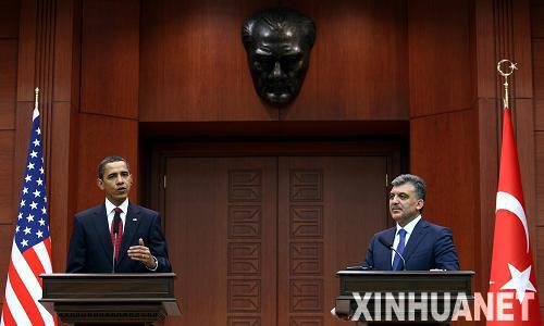 奥巴马表示美将加强与土耳其的盟友关系4月6日,在土耳其首都安卡拉,到访的美国总统奥巴马(左)与土耳其总统居尔出席联合记者招待会。当天,奥巴马在记者招待会上表示,土耳其是连接西方和伊斯兰国家的桥梁,美国将进一步加强与土耳其的盟友关系。奥巴马于5日晚抵达土耳其首都安卡拉,开始对土耳其进行为期两天的正式访问。新华社/阿纳多卢通讯社