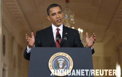 3月24日,美国总统奥巴马在白宫举行第二次黄金时间记者会。奥巴马当晚说,美国政府正在“全面出击”应对经济危机,并已看到取得进展的迹象。 新华社/路透