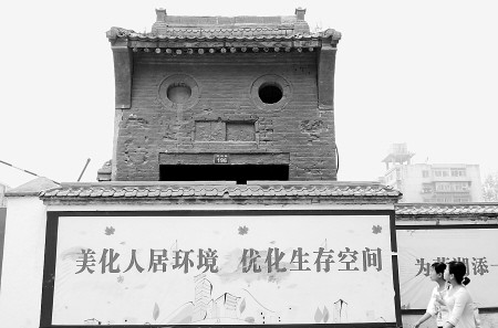 工地一位负责人讲,考虑到这座门牌楼已经有上百年的历史,就没有随着城中村改造整体拆除,暂时保护起来。“‘囧’?我还没发现,难怪有很多人来这里转悠。”他说,最近很多年轻人来看这座门牌楼,还有好多人拿着相机拍照。 文/图 记者 李卓洋