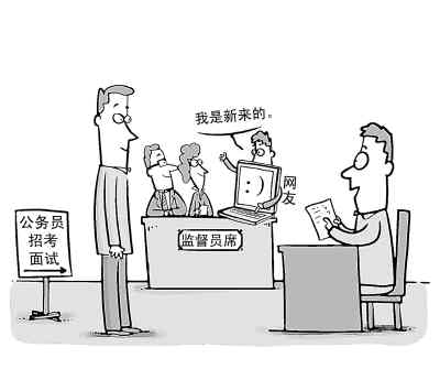 以往的面试环节很神秘,除了考生和考官,没有人知道现场的情况,因此每年都有人质疑面试的公正性,甚至写信来投诉。张家界市人事局公务员管理科科长但勇说:“选网友来当监督员,引入社会监督机制,进一步提高考试公正公开性。我们是把自己投到‘金鱼缸’里,尽可能地在公务员考试的每个环节中接受公众的监督。”