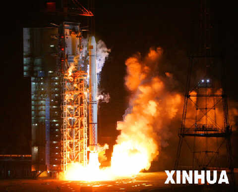 2007年4月14日4时11分,我国在西昌卫星发射中心用“长征三号甲”运载火箭,成功将一颗北斗导航卫星送入太空。 新华社记者李刚摄